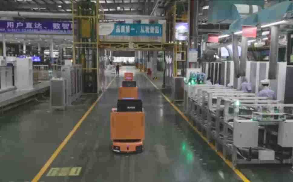 为车载冰箱物流配送打造的智能解决方案,,,,包含产中物流通过潜伏举升AMR搬运至线边,,产后成品物流智能仓储,,,流程包含产中物流智能齐套入库,,,线边安灯叫料AMR智能配送至线边,,,成品入库、、出库,,,,通过无人堆高车机器人,,智能仓储管理替代人工作业管理,,,,实现更高存储、、、更高效率、、更具柔性化的解决方案。。。。